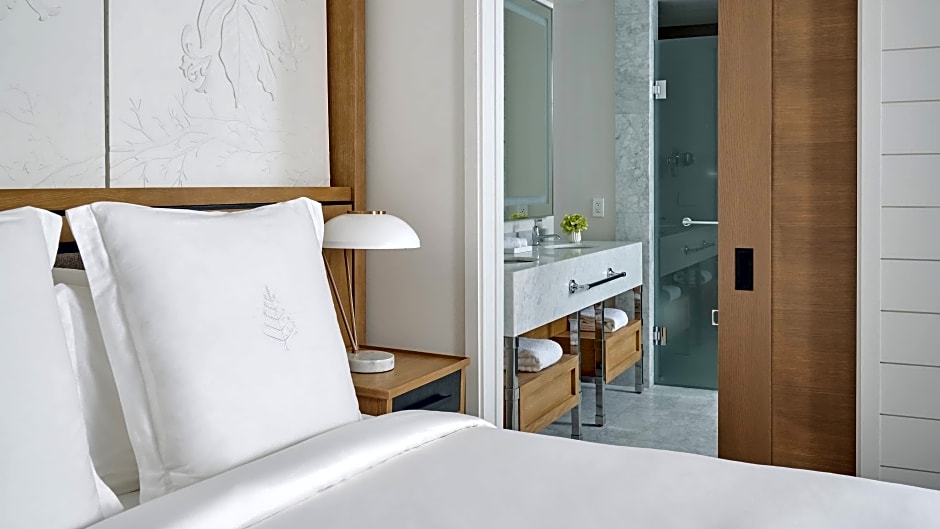 The spa bath is a top feature of this suite. The suite features a tea and coffee maker and river views.